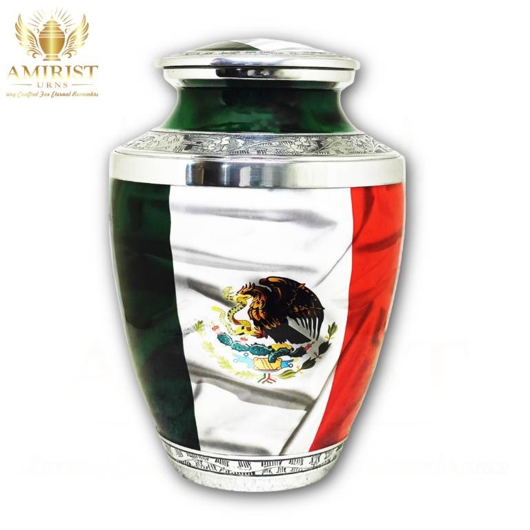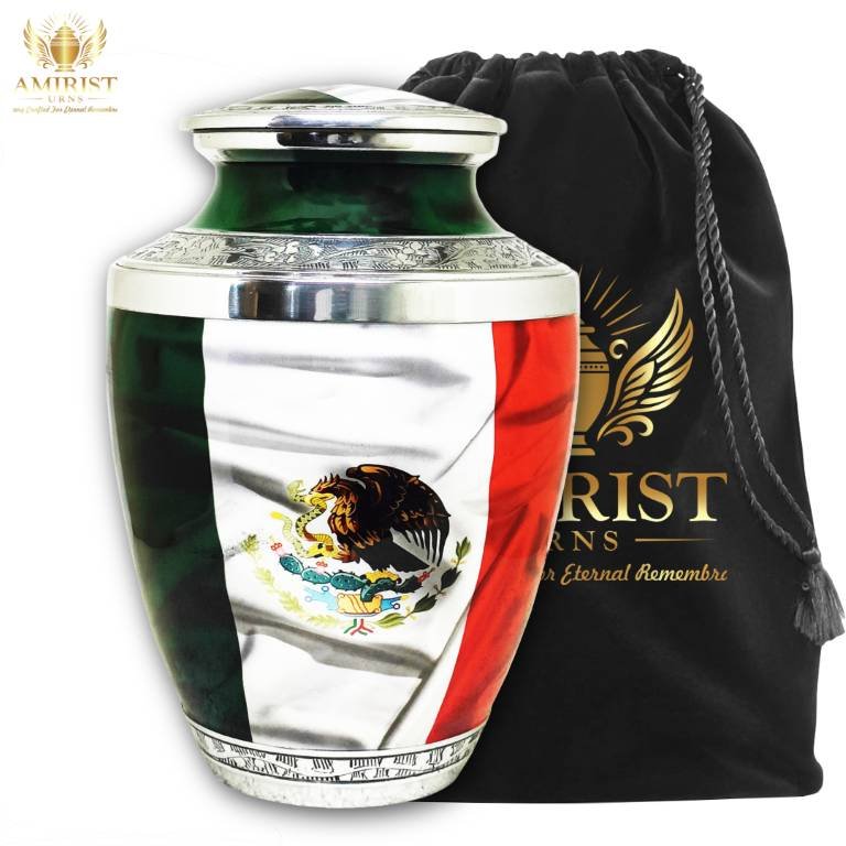 Mexican Flag Adult Cremation Urn – Handcrafted Metal Memorial Urn for Human Ashes | Amirist Urns