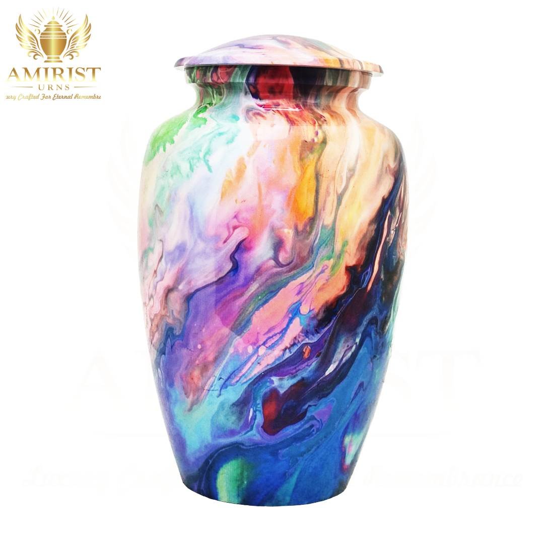 Amirist Urns® Large Adult Cremation Urn for Ashes – Multicolor Artistic Metal Funeral Memorial Urn