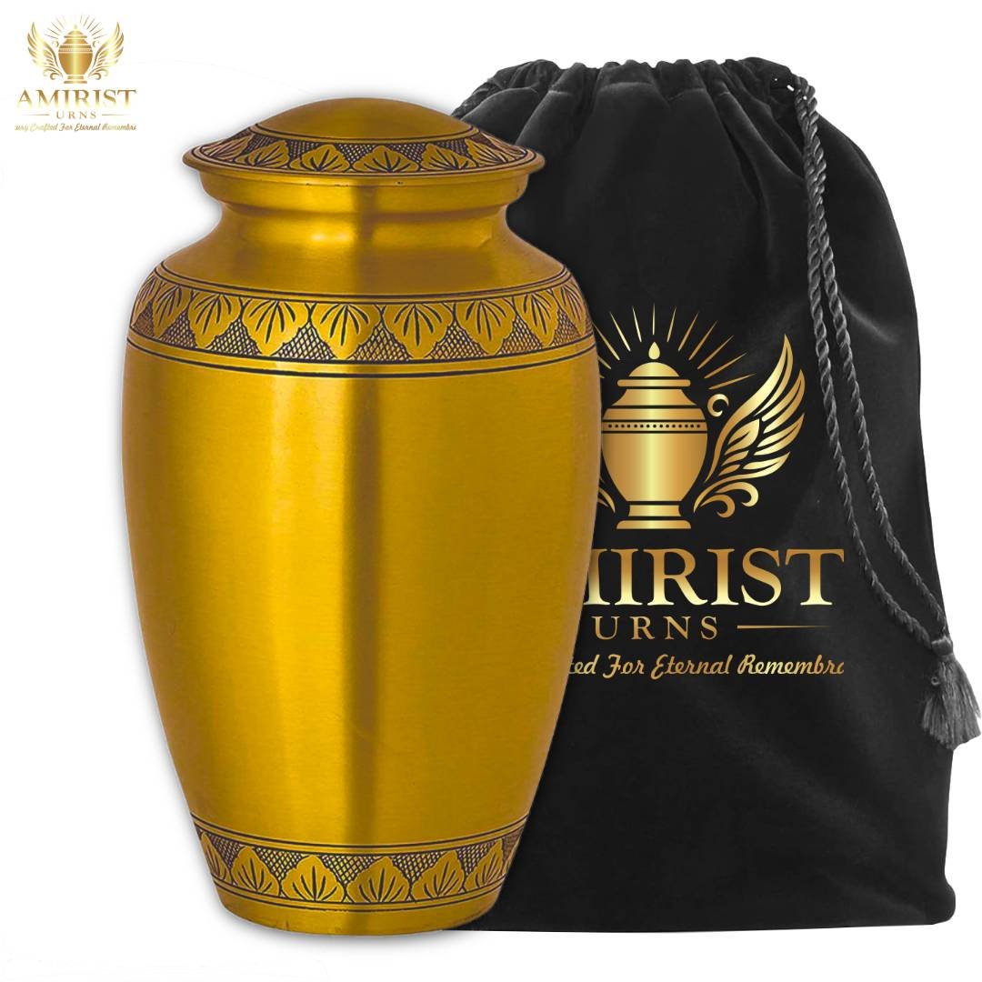 Amirist Urns® Large Gold Cremation Urn for Adult Ashes – Classic Metal Funeral Memorial Urn