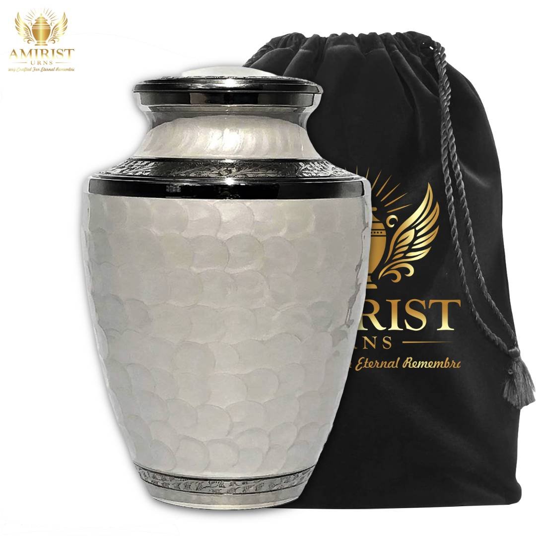 Amirist Urns® White Hammered Aluminum Cremation Urn for Adult Ashes – Handmade Metal Memorial Funeral Urn (200 Cubic Inches)