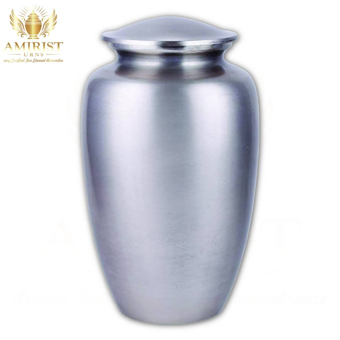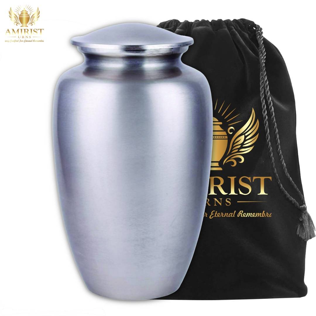 Amirist Urns® Premium Silver Aluminum Cremation Urn for Human Ashes – Elegant Adult Funeral Memorial Urn with Secure Lid (200+ Cu In)