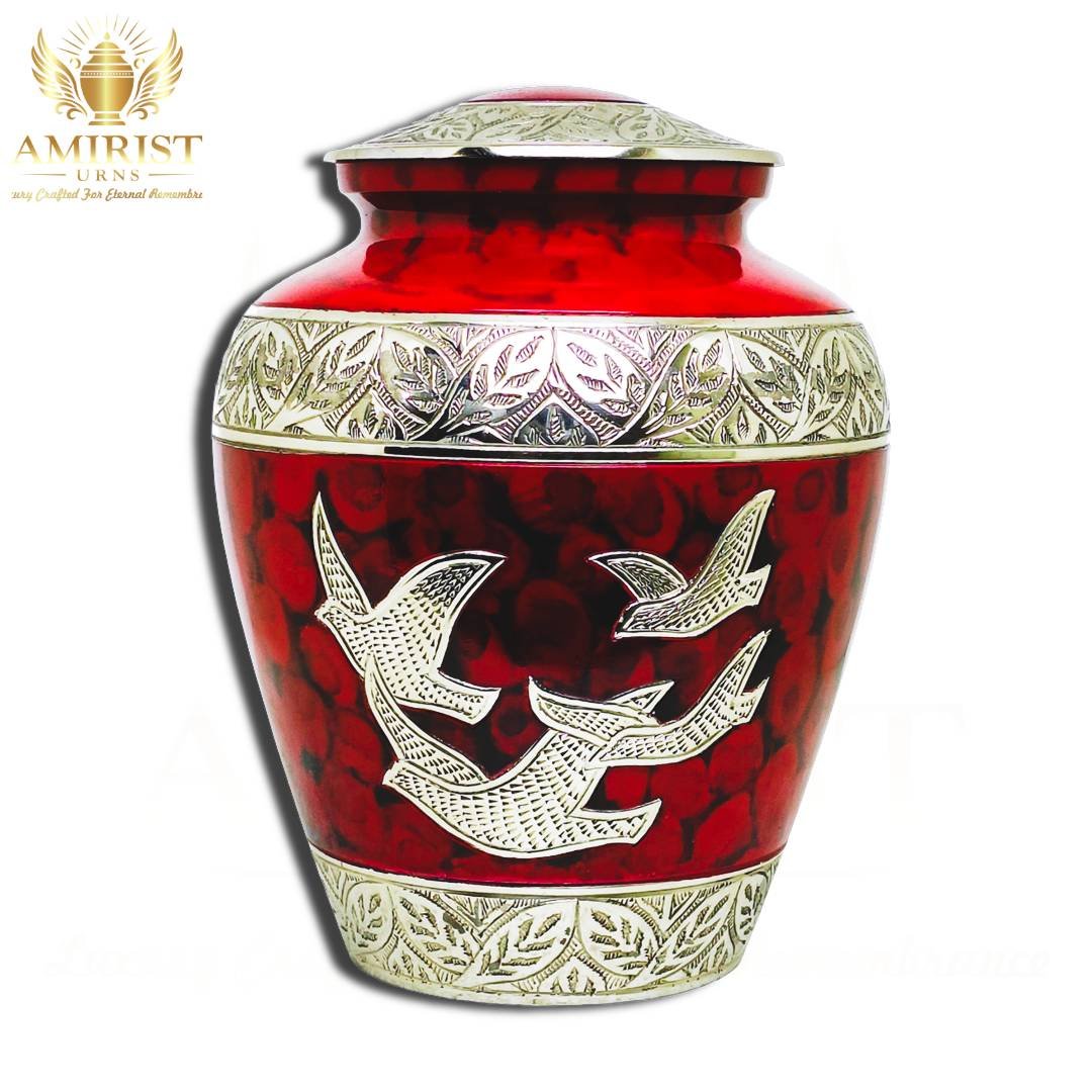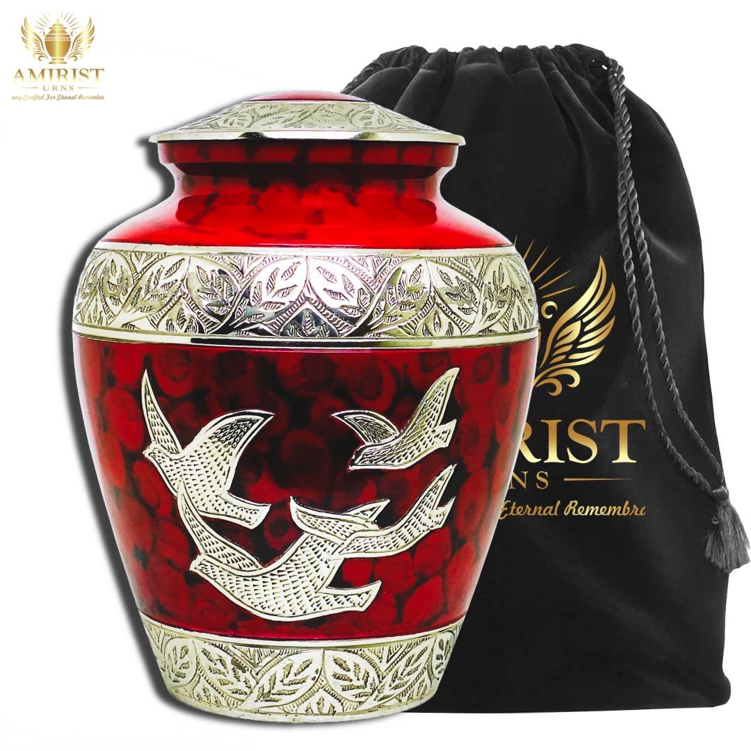 Amirist Urns® Premium Red Cremation Urn for Human Ashes with Dove Design – Elegant Metal Adult Funeral & Memorial Urn (200+ Cu In)