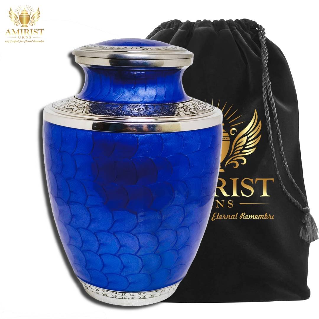 Amirist Urns® Premium Royal Blue Cremation Urn for Human Ashes – Elegant Metal Adult Funeral & Memorial Urn with Secure Lid (200+ Cu In)