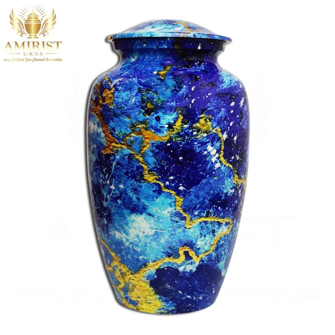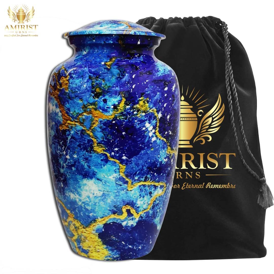 Amirist Urns® Premium Galaxy Blue Cremation Urn for Human Ashes with Gold Vein Design – Elegant Metal Adult Funeral & Memorial Urn (200+ Cu In)