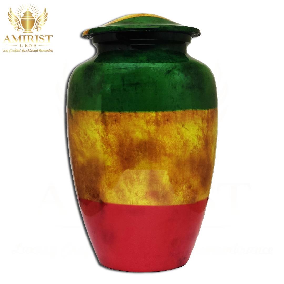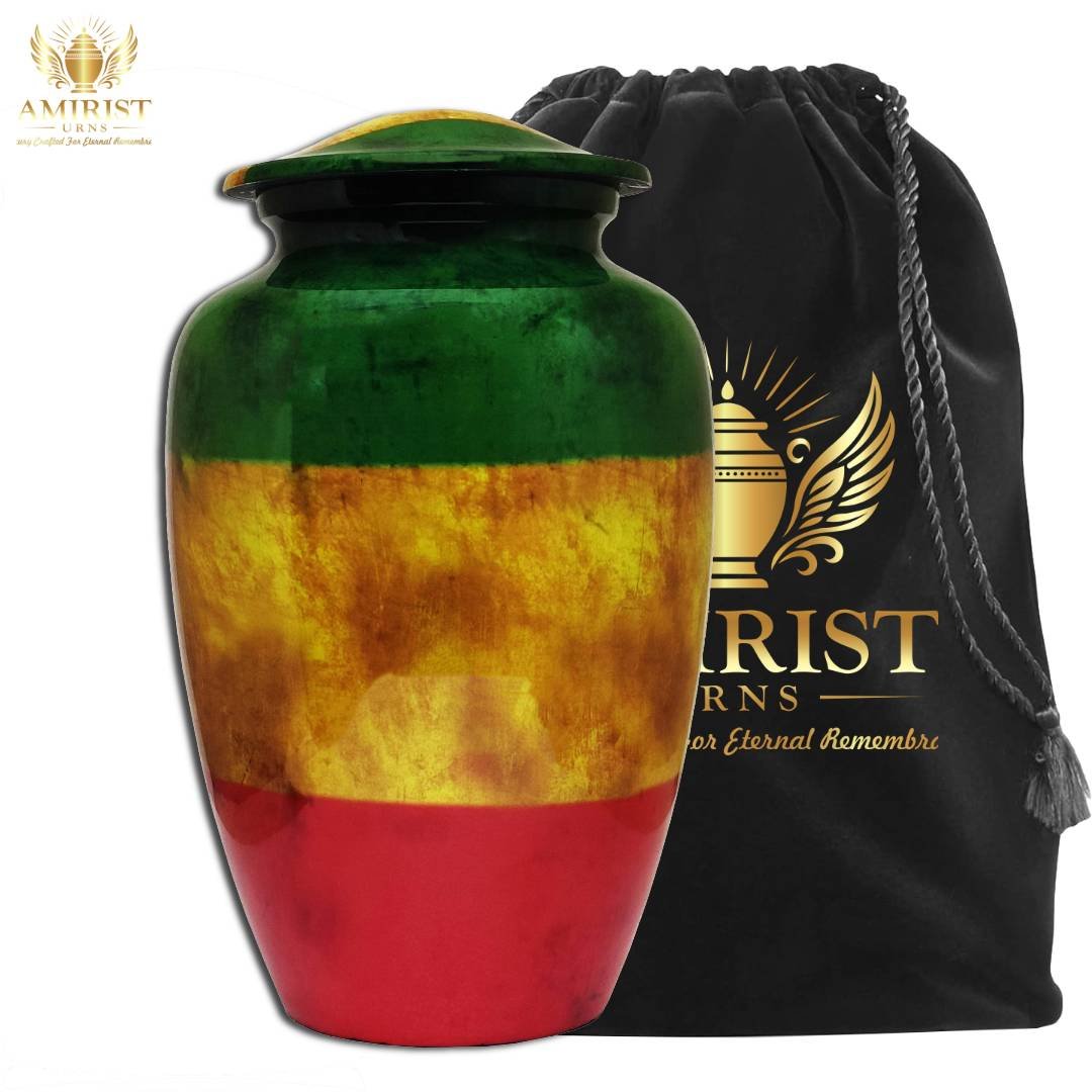 Amirist Urns® Premium Tricolor Cremation Urn for Human Ashes – Green Gold Red Artistic Metal Adult Funeral & Memorial Urn (200+ Cu In)
