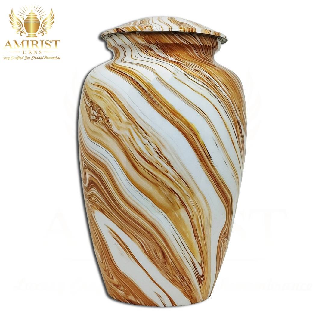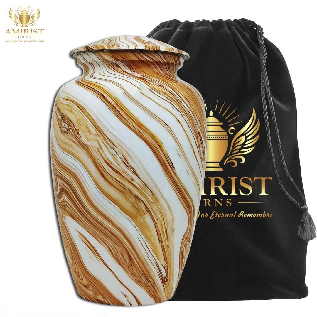 Amirist Urns® Premium White & Brown Marble Cremation Urn for Human Ashes – Elegant Stone Finish Adult Funeral & Memorial Urn (200+ Cu In)