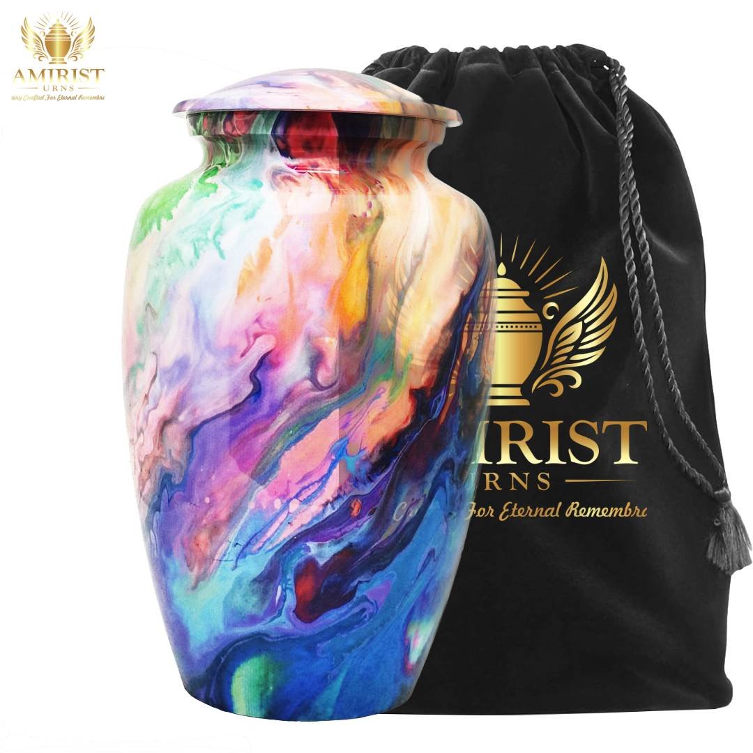 Amirist Urns® Large Adult Cremation Urn for Ashes – Multicolor Artistic Metal Funeral Memorial Urn